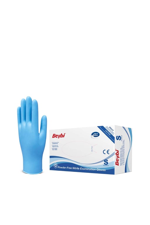 Beybi Pudrasız Nitril Muayene Eldiveni S Beden Mavi 100'lü 8690648408003ES