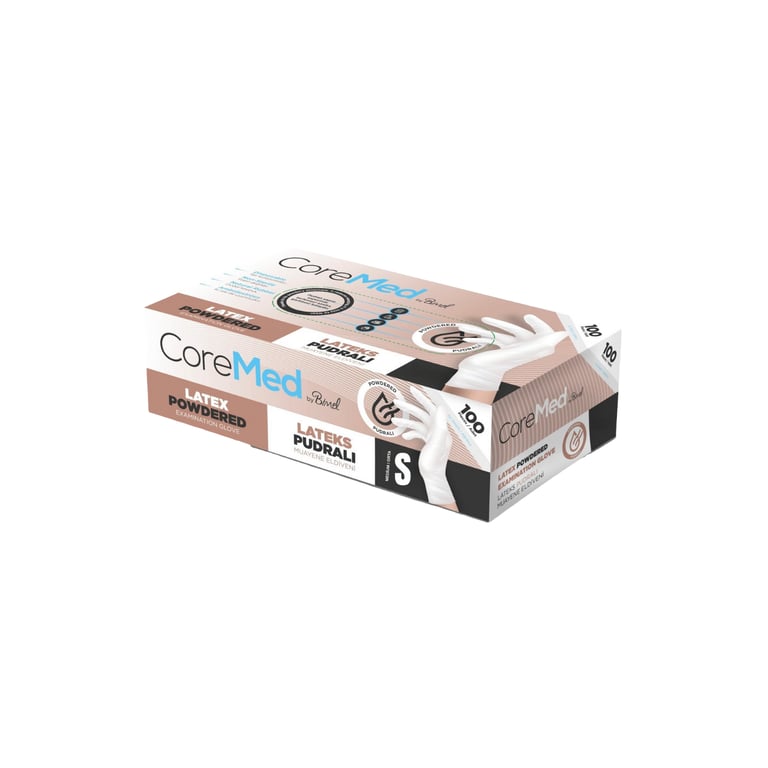 Bimel Coremed Pudralı Lateks Eldiven S Beden Beyaz 100'lü 8681124004178GRSY