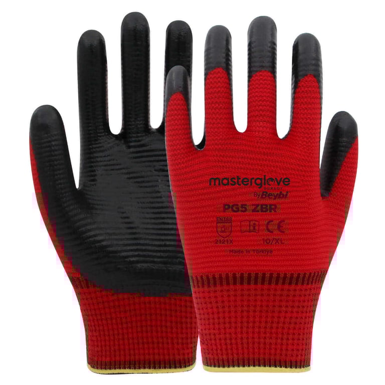 Master Glove Pg5 Zebra Kırmızı Polyester Örme Nitril Iş Eldiveni 10 Beden 8681780025203GRSY