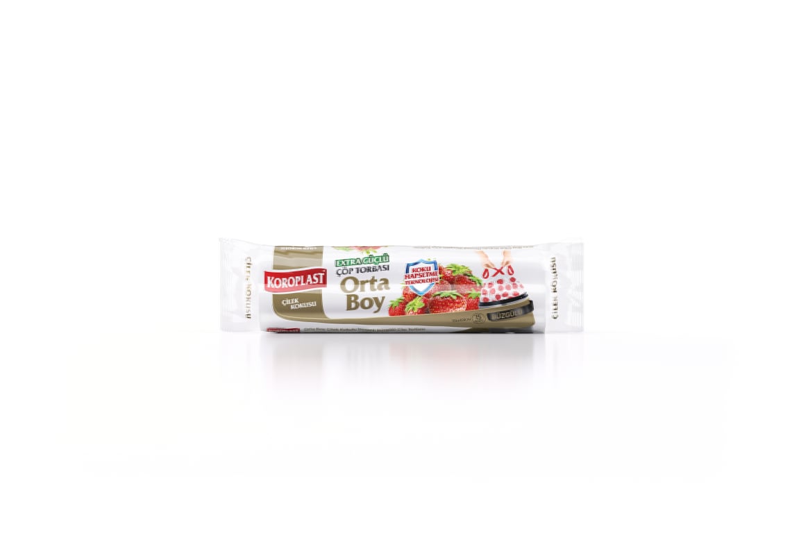 Koroplast Çöp Torbası Çilek Kokulu Ekstra Güçlü Büzgülü Orta Boy 15'li 8690741201617
