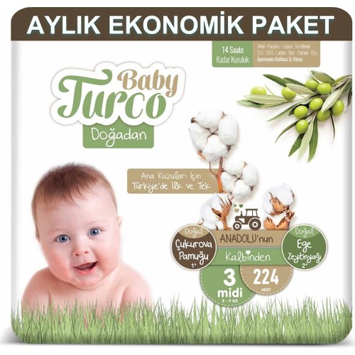 Baby Turco Bebek Bezi Aylık Ekonomik Paket 3 Numara 5-9 kg 224'lü
