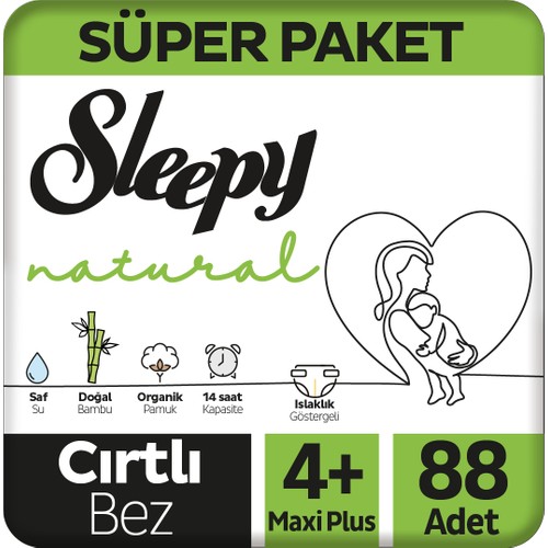 Sleepy Natural Süper Paket Bebek Bezi 4+ Numara Maxi Plus 88 Adet