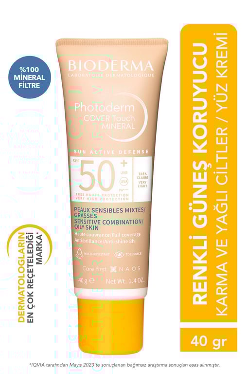 Bioderma Photoderm Cover Touch Mineral SPF50+, yağlı ve karma ciltler için geliştirilmiş, %100 mineral filtre içeren yüksek koruma sağlayan güneş koruyucu bir fondöten alternatifi olarak öne çıkmaktadır. Fluidactiv™ Patenti sayesinde cildin yağ ve sebum dengesini düzenlemeye yardımcı olurken, matlaştırıcı etkisiyle gün boyu parlama kontrolü sağlar.