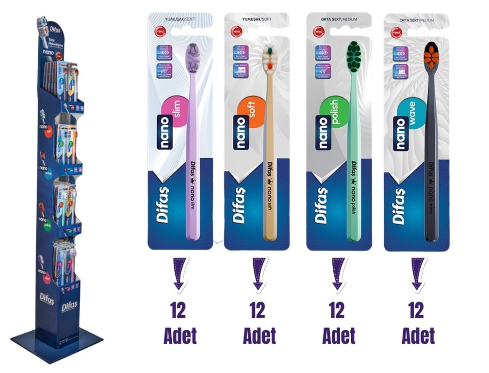 Difaş Nano Diş Fırçası 48 Li Ayaklı Stant 8690927555237