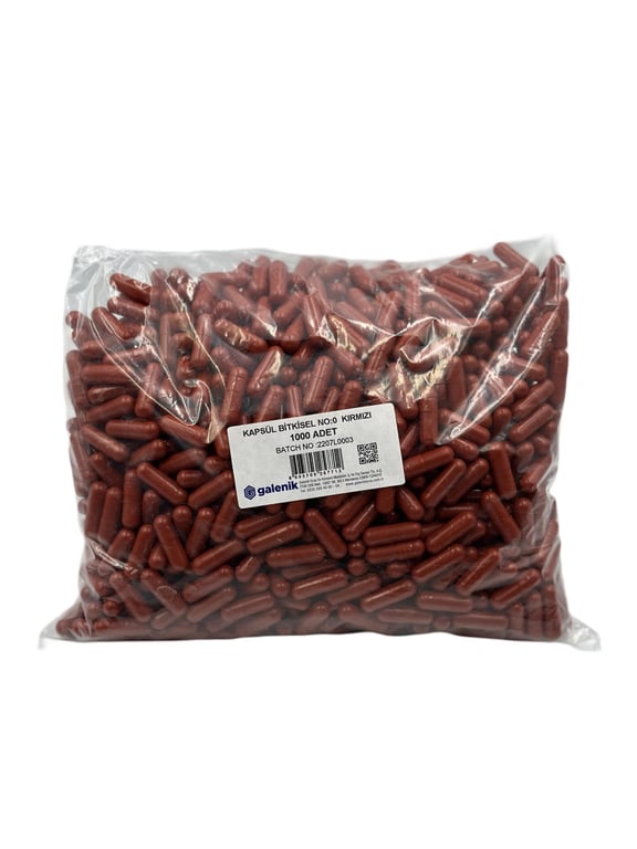 Galenik Kırmızı Bitkisel Kapsül 500 mg No: 0 - 1000 Adet ( Midede Çözünen )