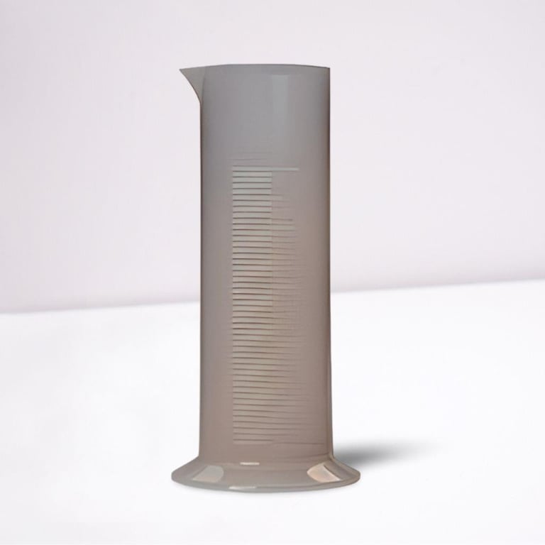 Kısa formlu kabartma skalalı yuvarlak dipli PP mezür