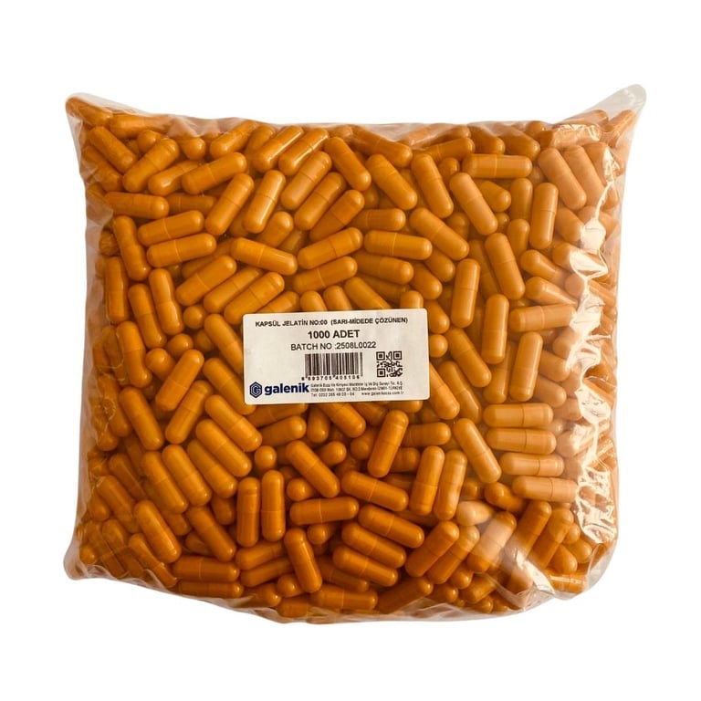 Galenik Sarı Jelatin Kapsül No: 00 - 1000 Adet ( Midede Çözünen ) 8693705405106