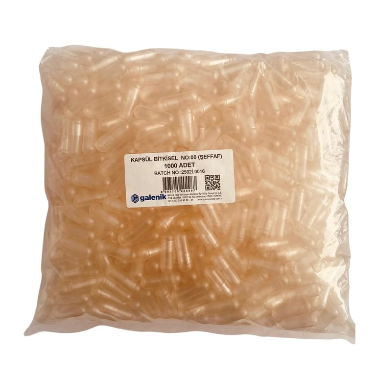 Galenik Şefaf Jelatin Kapsül No: 00 - 1000 Adet ( Bağırsakta Çözünen )