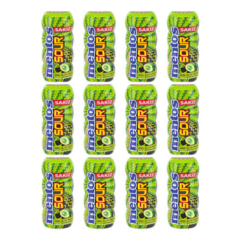 Mentos Sour Yeşil Elma Aromalı Şekersiz Tatlandırıcılı Ekşi Draje Sakız30 g x 12 Adet