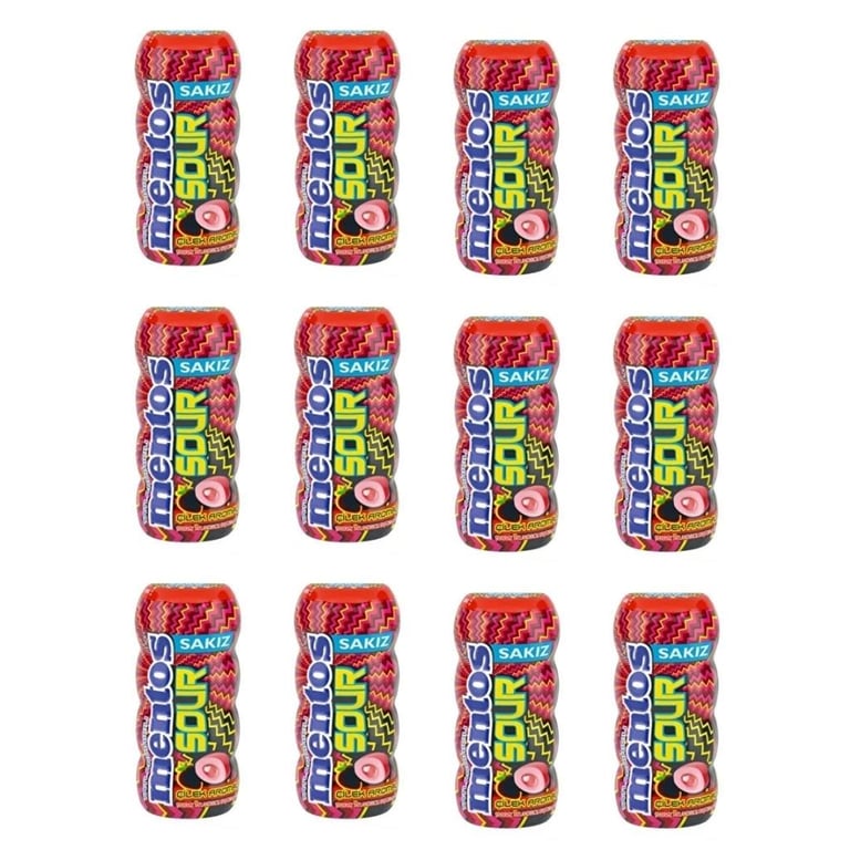 • Mentos Sour Çilek Aromalı Şekersiz Ekşi Sakız 30 Gr * 12 Adet
