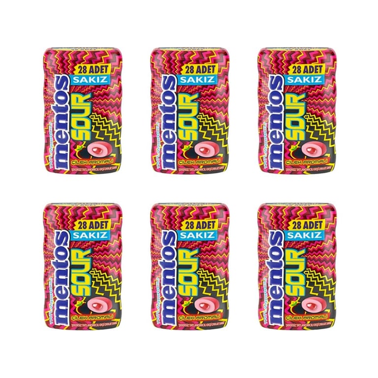 Mentos Sour Çilek Aromalı Şekersiz Tatlandırıcılı Ekşi Draje Sakız 56 g x 6 Adet 8682790000303