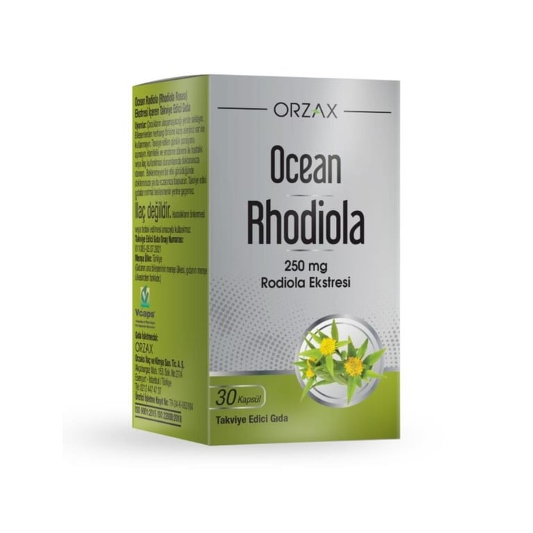 Ocean Rhodiola Kapsül, her kapsülünde 250 mg Rhodiola rosea kök ekstresi içeren bir gıda takviyesidir.