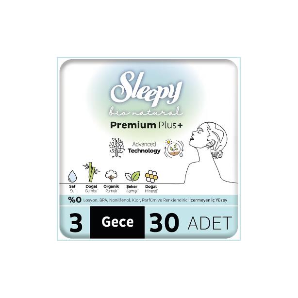 Sleepy Bio Natural Premium Plus Gece Hijyenik Ped Mega Paket 30 Adet 8682241217816