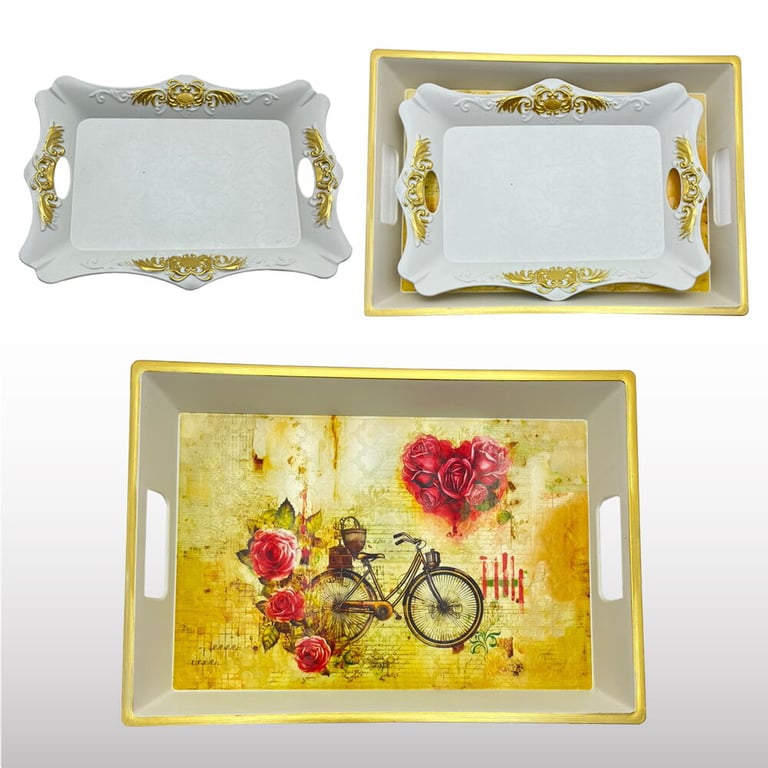 İsra 2'li Lüks Beyaz Tepsi Çeşitleri-farklı Desenlerde TEP03