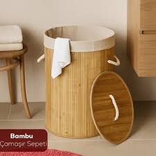 Pablito Kapaklı Kirli Çamaşır Sepeti Yuvarlak - Bambu Kirli Çamaşır Sepeti-tek Gözlü ÇAM052