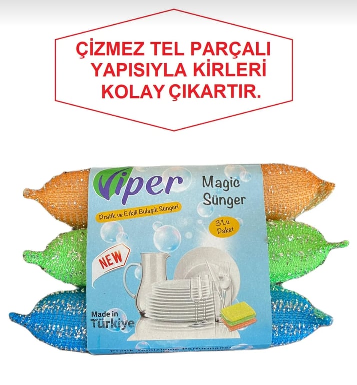 VİPER 3'LÜ SİMLİ MAGİC SÜNGER-FARKLI RENKLERDE