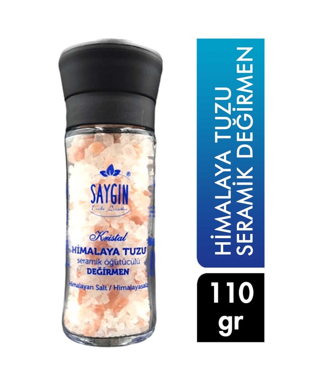 Yemeklerinize sağlıklı bir lezzet katmanızı sağlamak için öğütülmemiş ve katkı maddesiz, doğal haliyle sofranıza gelen Saygın Himalaya Tuzu insan bedeninde doğal olarak bulunması gereken 92 mineralden 84'ünü içeren, besleyici ve sağlıklı bir tuzdur. Doğal pembe rengini çıkarıldığı kayalardan alan Saygın Himalaya Tuzu ısıl işlem görmediğinden besin değirini yitirmez, kimyasal yapısı bozulmaz. Şık ve pratik, seramik öğütücülere sahip değirmeniyle hem sofranıza çok yakışır hem de yemeklerinize taze ve sağlıklı lezzet katar.