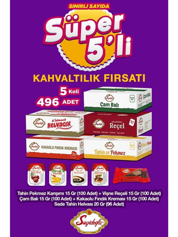 Seyidoğlu Doğal Lezzetler Kahvaltı Seti – Çam Balı, Fındık Kreması, Vişne Reçeli, Tahin Helva, Tahin TX117AA6E5517