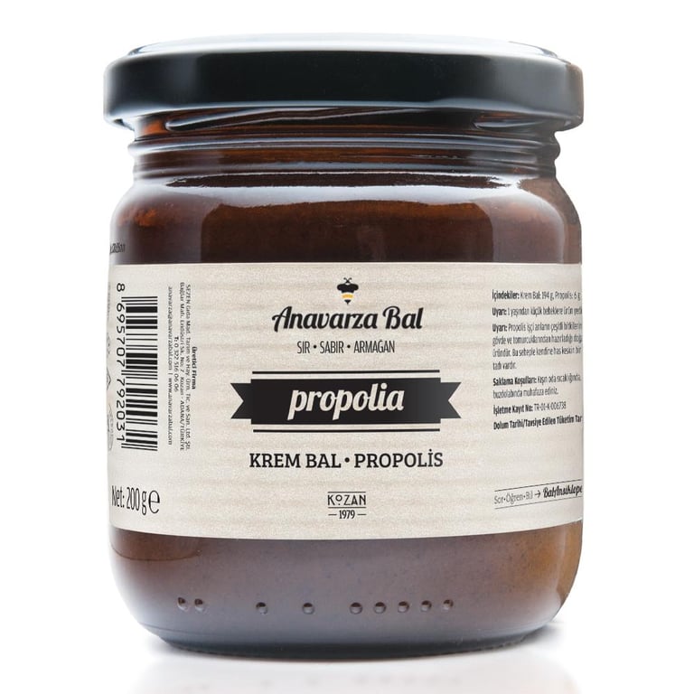 Anavarza Bal’ın Ballı Karışımlar kategorisinde yer alan Anavarza Propolia Krem Bal; Türkiye’nin zengin bitki florasında doğal olarak yetişen çiçeklerden elde edilen süzme balların, kontrollü koşullarda krem hâline getirilmesi ve içeriğinde propolis karışımı kullanılması ile elde edilmiştir.