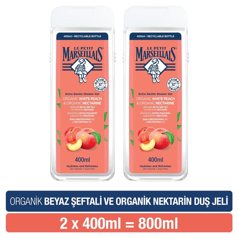 Le Petit Marseillais Organıc White Peach & Nectarine Duş Jeli 2 x 400 ml 3574661636191