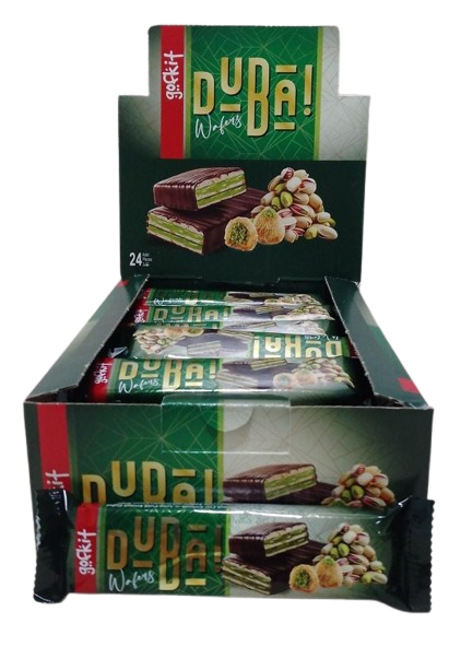 Gofkit Wafers Dubai Çikolata Kaplamalı Çıtır Kadayıflı Ve Antep Fıstık Kremalı Gofret 24'lü