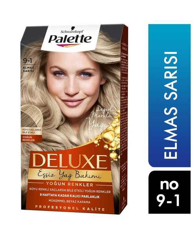 Palette Deluxe Saç Boyası 9-1 Elmas Sarısı 8 haftaya kadar kalıcı ve göz alıcı renk sonucu sağlar saçlarınıza zarar vermez