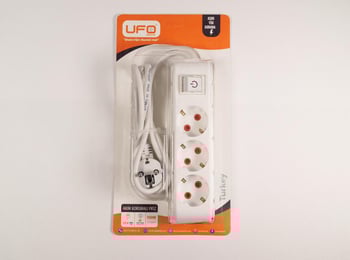 Ufo 3'lü 3 Metre Anahtarlı Grup Priz Beyaz