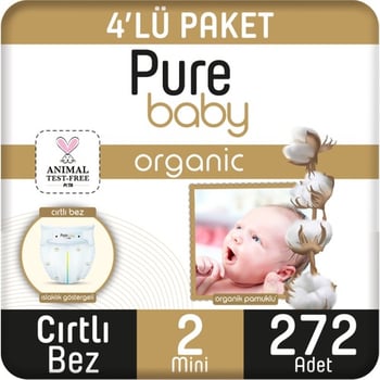 Pure Baby Organik Pamuklu Cırtlı Bez 4'Lü Paket 2 Numara Mini 272 Adet