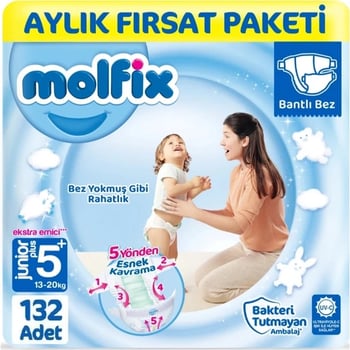 Molfix Fırsat Paketi 5+ Numara 44*3=132 Adet Bebek Bezi