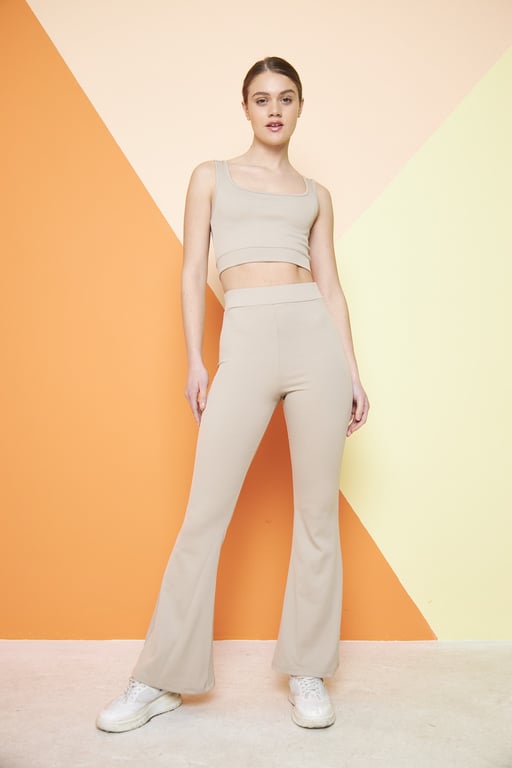 Thiff Yüksek Bel Fitilli Ispanyol Paça Interlok Örme Tayt 202303002025