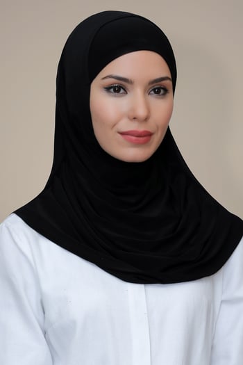 Hürrem Bone Siyah Pratik Hazır Geçmeli Tesettür Eşarp Sandy Kumaş Kendinden Boneli 1290_01