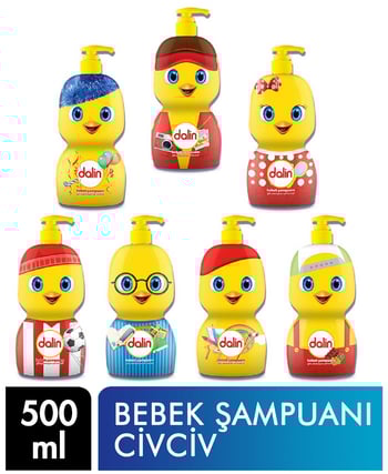 Dalin Civciv Bebek Şampuanı Bilbil, Kopkop, Süspüs, Koşkoş, Yapyap, Gezgez, zıpzıp tasarımlarına sahiptir. Paket ve koli içerikleri karışıktır, tasarım seçimi yapılamamaktadır.