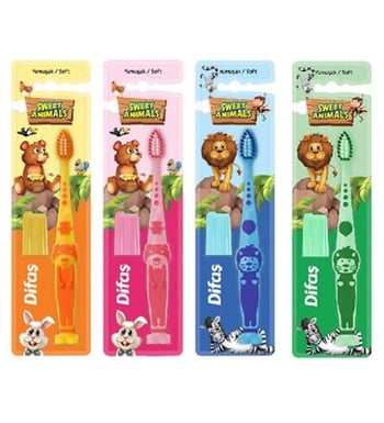 Difaş Sweet Anımals Çocuk Diş Fırçası Yumuşak 12'li Stant