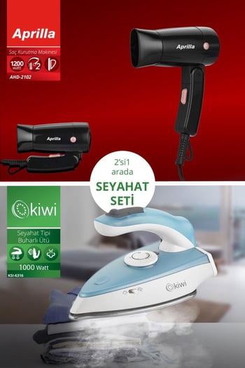 Kiwi Kats-12 2'si 1 Arada Katlanabilir Ütü ve Saç Kurutma Makinesi Dahil Seyahat Seti