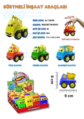 Cartoon Oyuncak Sürtmeli İnşaat Araçları