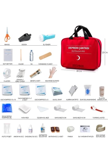 Deprem, su baskını, yangın gibi doğal afetlerde kişilerin yaşam ihtiyaçlarını karşılayan ürünleri ve ilk yardım malzemelerini içeren bir settir.