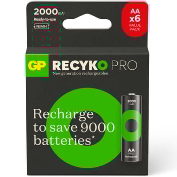 Gp Batteries Recyko Pro 2000mah Aa Kalem Ni-mh Şarjlı Pil, 1.2 Volt, 6'lı Kart