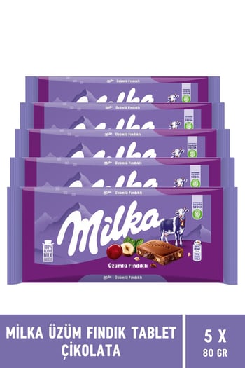 Milka Üzüm Fındık Tablet Çikolata 80 gr - 5 Adet