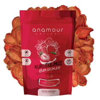 Anamour Natural Çilek Kurusu - Cips Çilek (Şekersiz) - Kuru Meyve Kıtırı 25 Gram