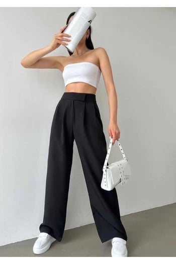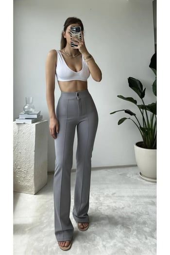 Thiff Krep Kumaş Likralı Önü Çimalı Gri Kadın Palazzo Pantolon