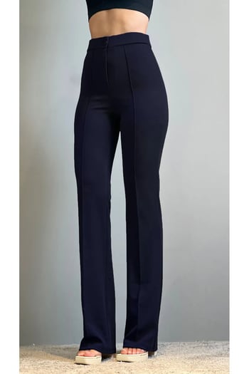 Thiff Kadın Likralı Cırt Kapama Lacivert Geniş Paçalı Rahat Palazzo Pantolon