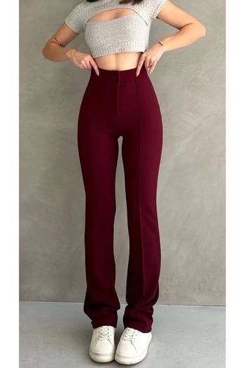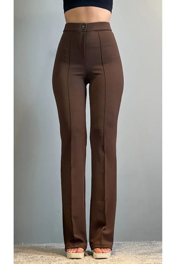Thiff Krep Kumaş Likralı Önü Çimalı Kahverengi Kadın Palazzo Pantolon