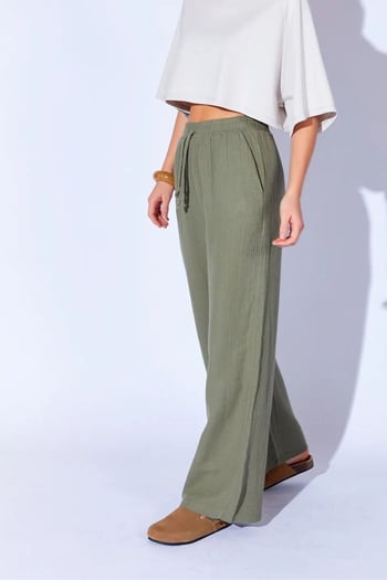 Thiff Haki Bol Paça Müslin Kadın Pantolon