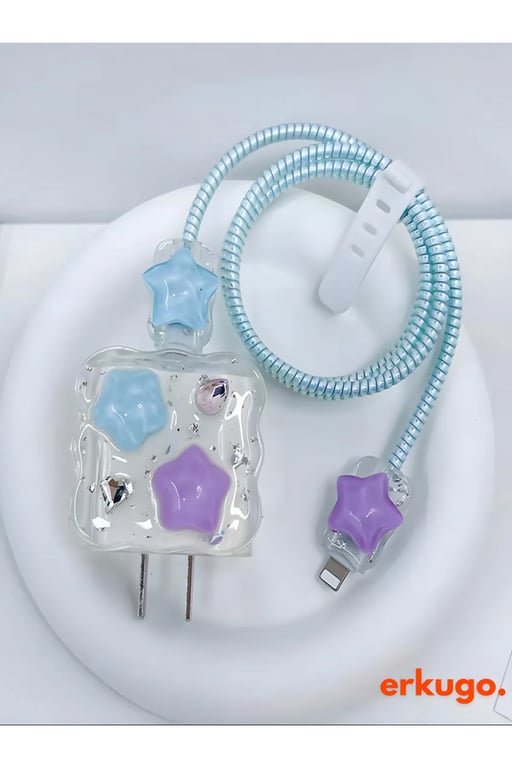 iPhone 18/20 W Şarj Cihazı Uyumlu 5 Parça Şarj Koruma Seti, Kablo Koruyucu EKG-K-1renkli_yıldızlar