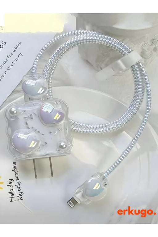 iPhone 18/20 W Şarj Cihazı Uyumlu 5 Parça Şarj Koruma Seti, Kablo Koruyucu EKG-K-1seffaf_kalpler