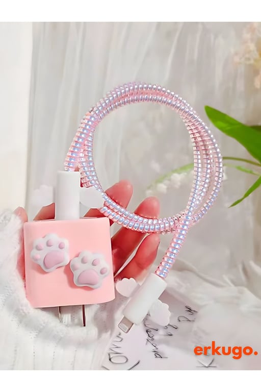 iPhone 18/20 W Şarj Cihazı Uyumlu 5 Parça Şarj Koruma Seti, Kablo Koruyucu EKG-K-1çift_kedi_patisi