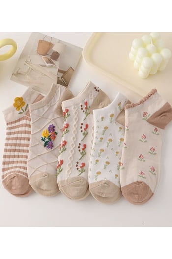 BGK 5 Çift Çiçek Gül Desenli Kadın Çorap Klasik 36-41