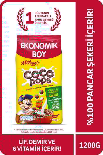 Kellogg's Coco Pops Çikolatalı Buğday ve Mısır Gevreği 1000 Gr, Lif,Demir ve 6 Vitamin içerir
