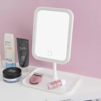 Buffer® Dokunmatik Led İşıklı Kare Makyaj Aynası – Altı Organizer Kaseli, Ayarlanabilir Aydınlatmalı