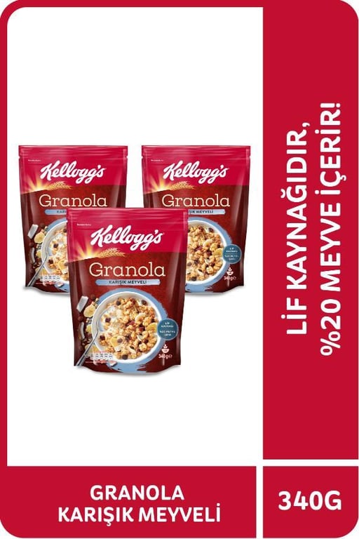 Kellogg's Karışık Meyveli Granola 340 Gr x3 Adet,%45 Yulaf içerir SET.KLN.02